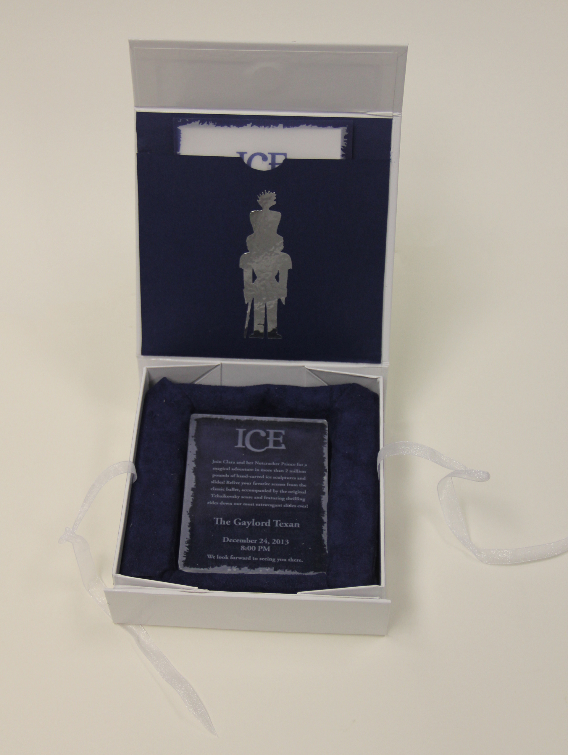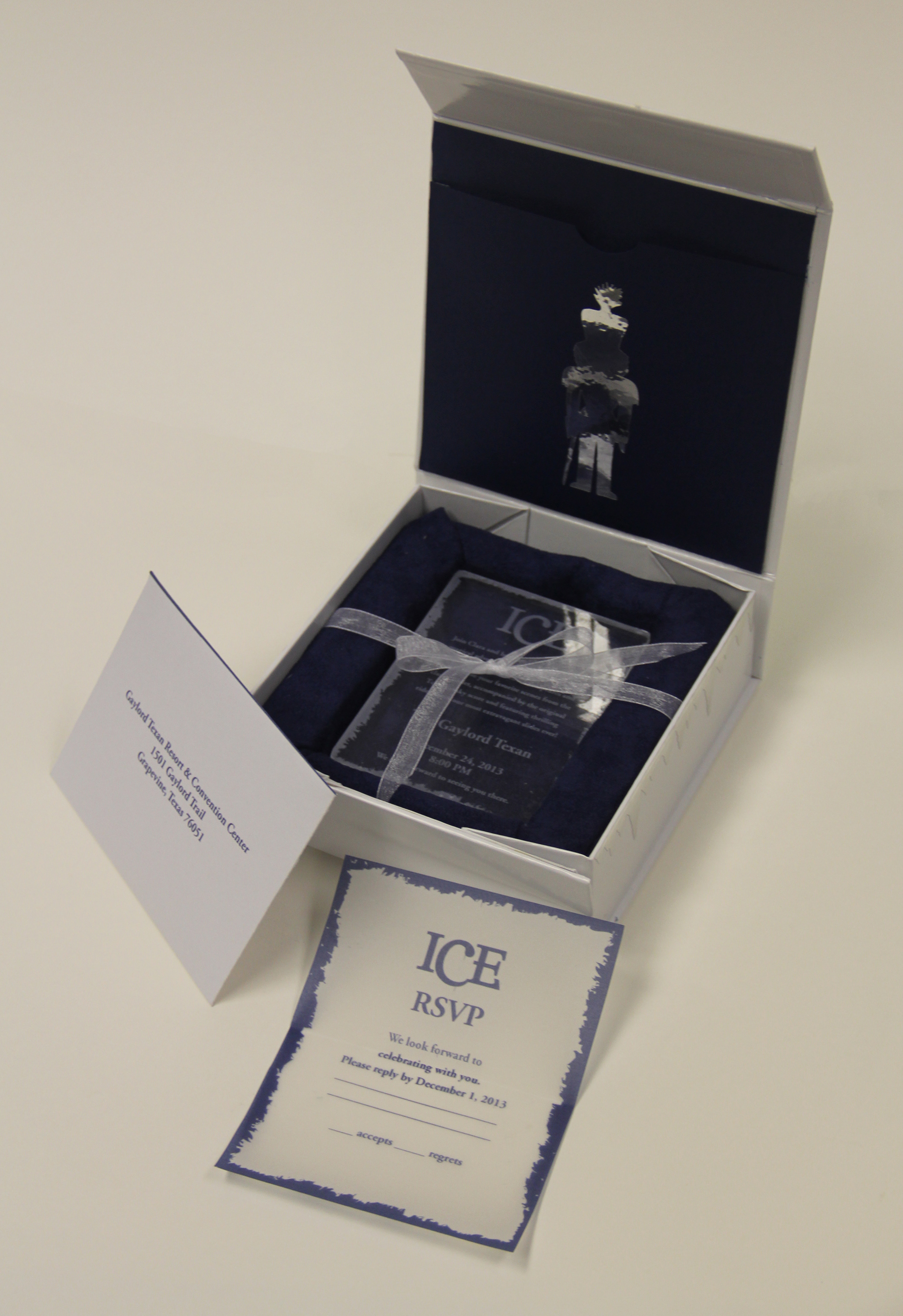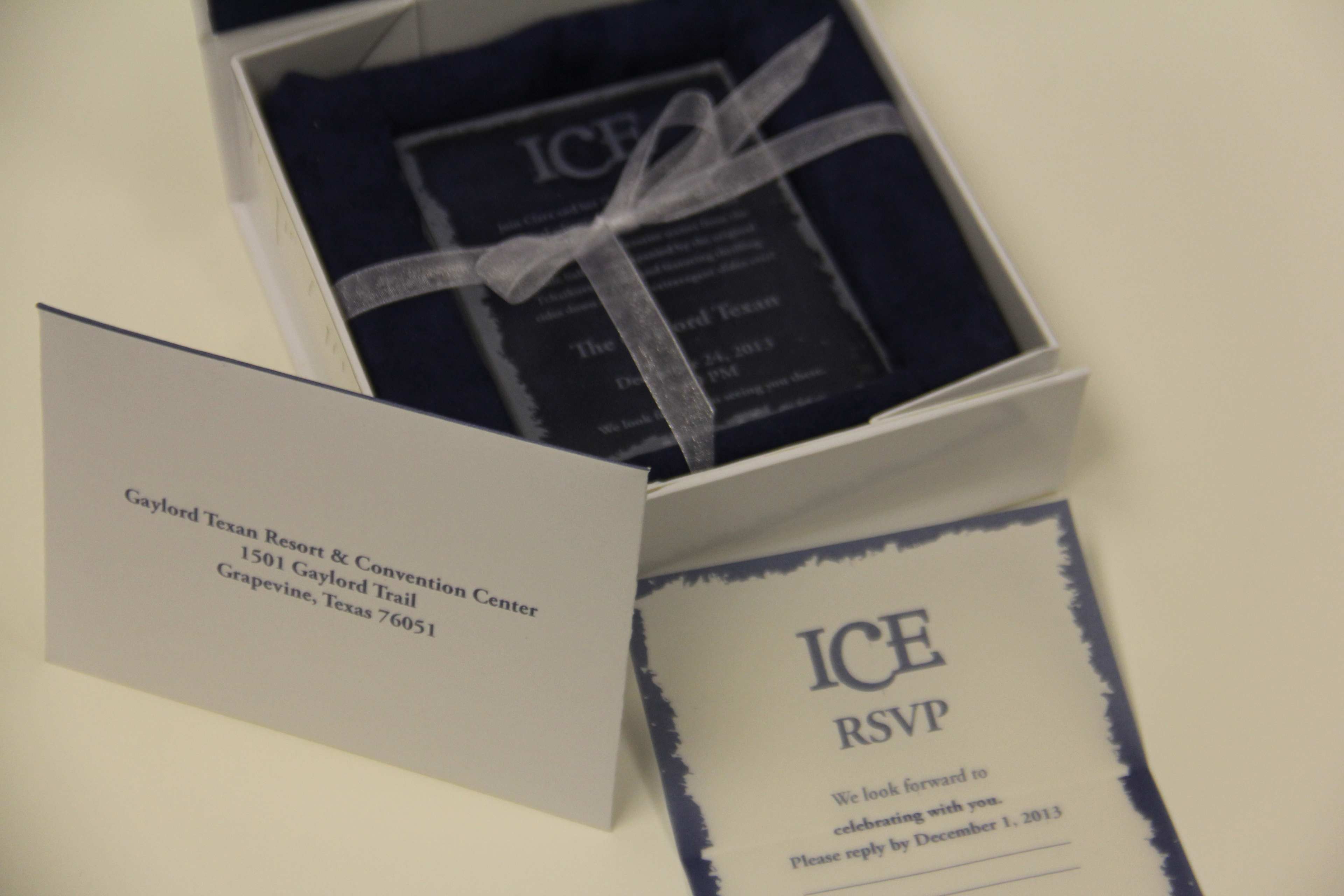 My partner and I collaborated on this project together. It's a VIP Invitation to the ICE show at the Gaylord Hotel. Inside gives you a hint of the theme this year. It comes with a limited addition "ice" invitation and RSVP card.