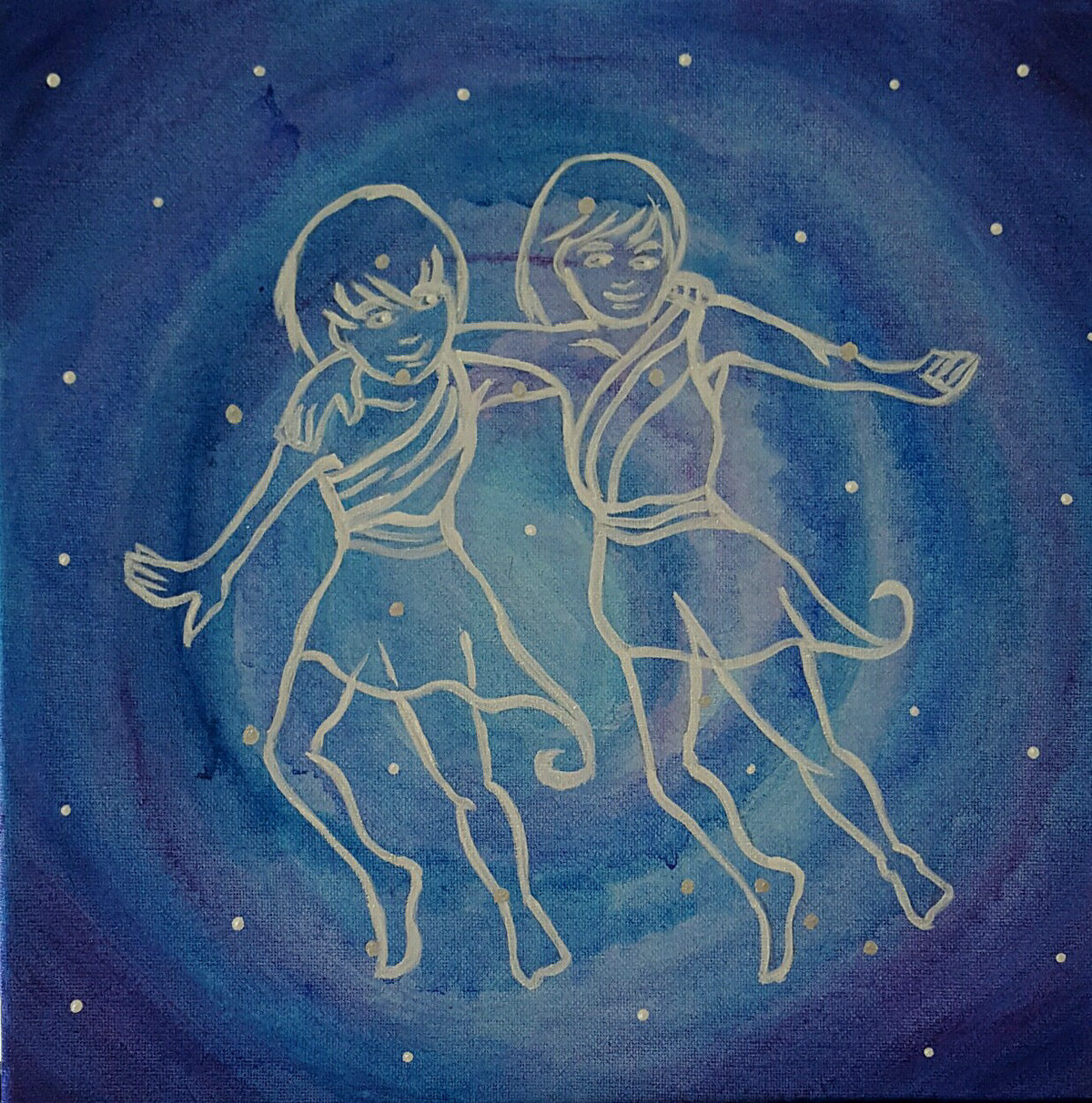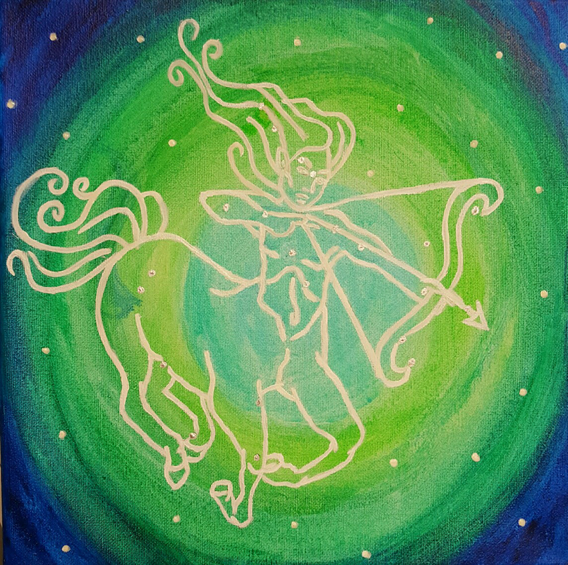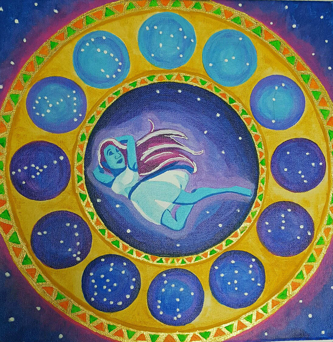 These are several Zodiac paintings I created after being inspired through each of their stories. I wanted to bring to life each of their personalities in the background and by which colour I selected for their constellation, Gold or Silver.